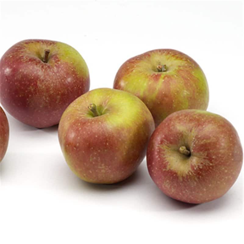 Avec sa peau mate, la jolie ronde porte une robe striée où se mêlent le jaune, le vert, le rouge et le brun. A peine sucrée et parfumée, elle est idéale en tarte ou à la croque, et est excellente en tatin.